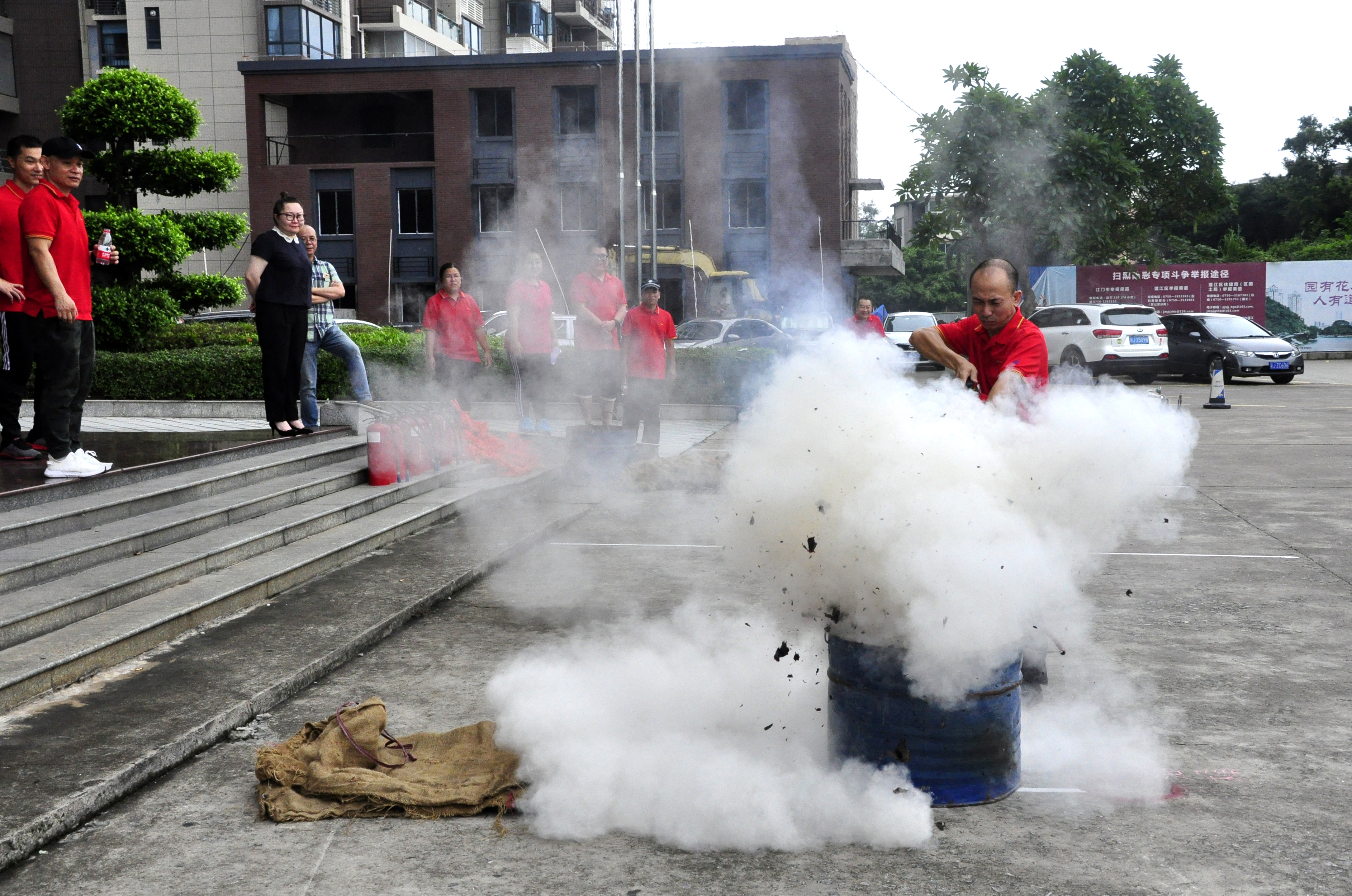 為搞好這次活動(dòng),公司成立了競(jìng)賽領(lǐng)導(dǎo)小組,由工會(huì)主席方小潮任組長(zhǎng),行政總監(jiān)張琛任副組長(zhǎng)。這次競(jìng)賽包括兩盤水帶連接、定點(diǎn)滅火、安全疏散、安全知識(shí)競(jìng)賽等四個(gè)項(xiàng)目。每個(gè)項(xiàng)目每隊(duì)選派3名員工參加,每個(gè)項(xiàng)目得分計(jì)入團(tuán)體總分,所有項(xiàng)目積分的總和為最終成績(jī),根據(jù)積分高低決出名次。賽前,工作人員對(duì)比賽步驟和一些注意事項(xiàng)進(jìn)行了講解和演示。