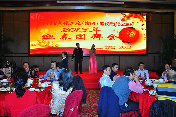 緊接著,在熱烈的掌聲祝福中,甘化公司董事長兼總裁麥慶華先生以及各公司高管進行頒獎,對股份公司及德力光電的優(yōu)秀員工、生物中心的先進管理者和先進工作者進行表彰。然后,公司領導集體上臺敬酒。隨著禮炮響亮地鳴放,萬眾期待的團拜晚宴正式開始了!