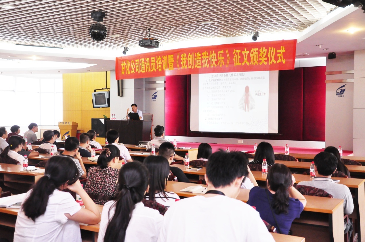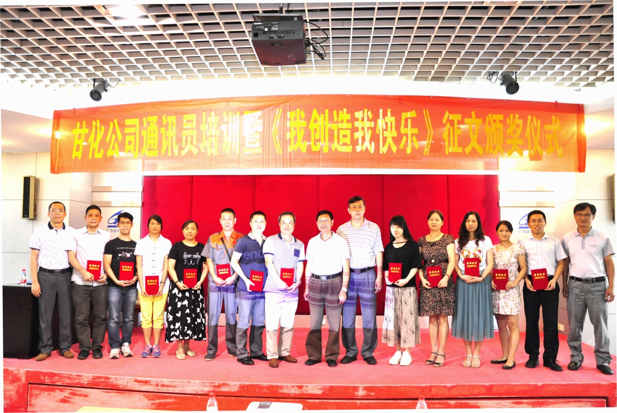 2016年8月25日下午,在甘化大廈17樓會(huì)議廳,公司黨委、工會(huì)舉辦通訊員培訓(xùn)暨《我創(chuàng)造,我快樂》獲獎(jiǎng)?wù)魑念C獎(jiǎng)儀式。培訓(xùn)由黨委書記、工會(huì)主席方小潮主講。公司黨委委員、各支部委員、工會(huì)委員和各單位通訊員等49人參加了會(huì)議。
