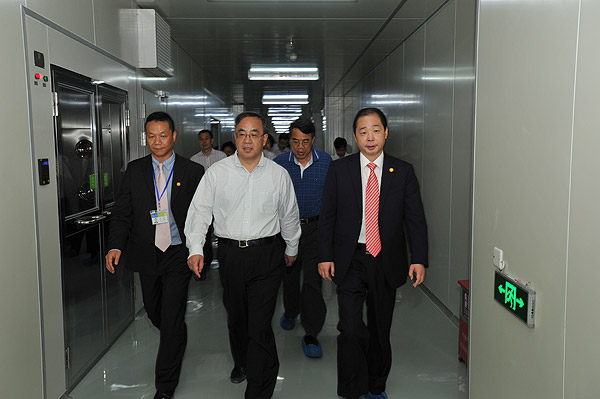 之后,在德力西集團(tuán)董事局主席胡成中和德力光電總經(jīng)理王非的陪同下,胡春華一行參觀(guān)了德力光電的外延片、芯片生產(chǎn)車(chē)間。